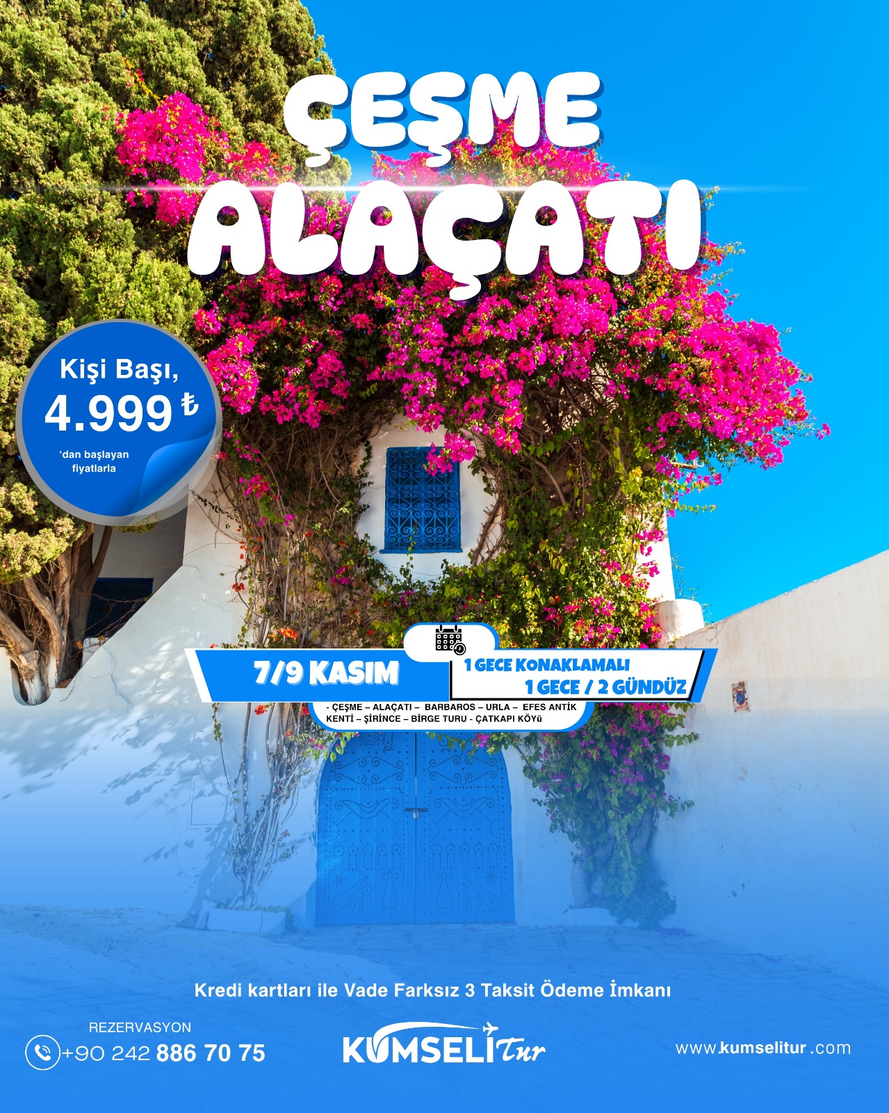 ÇEŞME – ALAÇATI – BARBAROS – URLA – EFES ANTİK KENTİ – ŞİRİNCE – BİRGE-ÇAT KAPI KÖYÜ -TURU